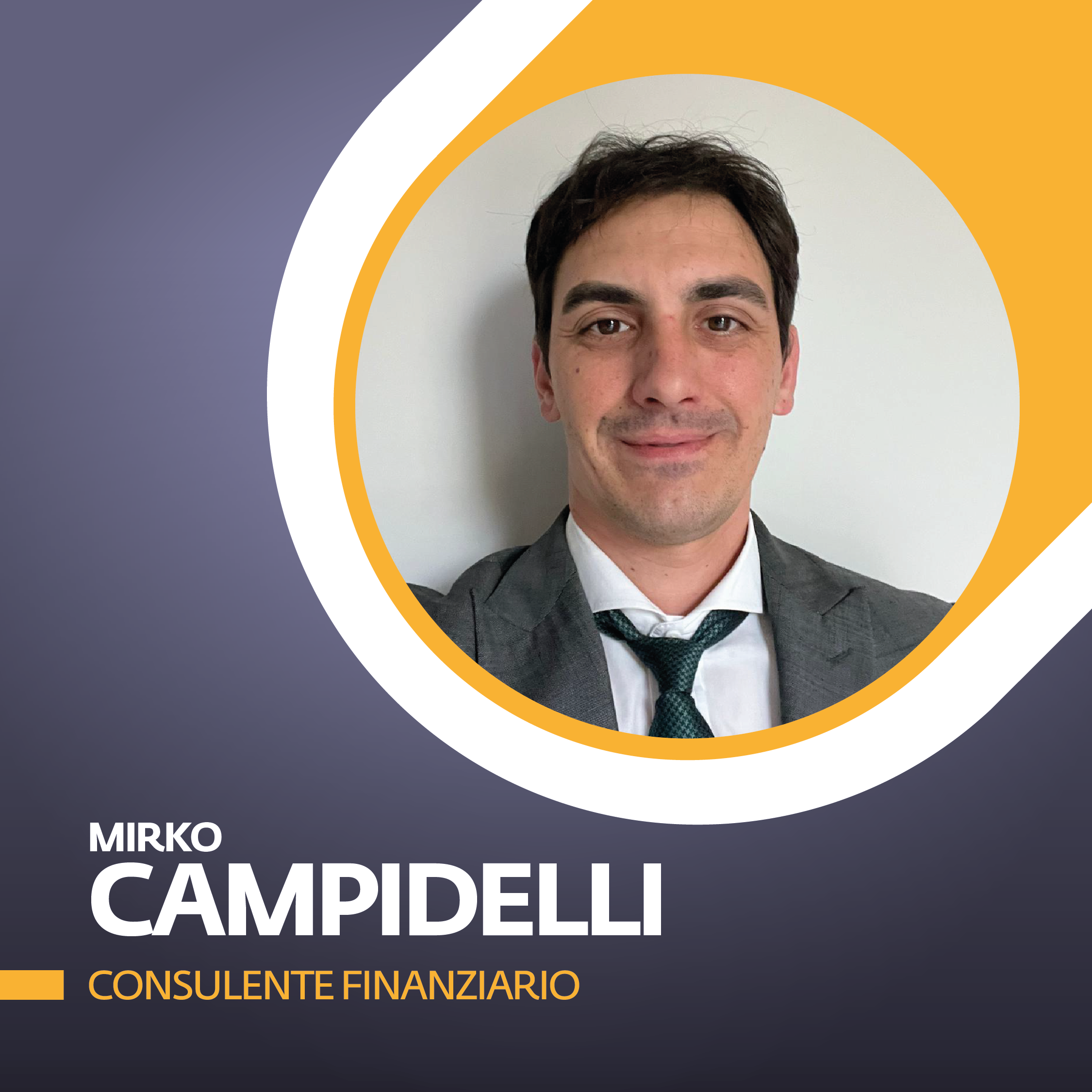 'Mi presento, sono Mirko Campidelli, consulente finanziario iscritto all’Albo dei Consulenti Finanziari e attualmente collaboro con Banca Fideuram. Ho conseguito la laurea in Economia a Forlì nel 2009 e, sin da subito, ho intrapreso la mia carriera nel settore bancario. Dal 2012, mi sono specializzato nella consulenza finanziaria e patrimoniale'.